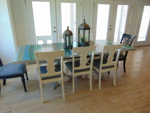 We furnished and decorated this new Jacksonville Beach house to be used as a vacation home/rental property. Embracing these clients' eclectic style resulted in a sophisticated fusion of minimalism, mid-century modern, and coastal shabby-chic. In order to get an authentic yet modern look, many pieces are vintage furniture that have been refurbished or chalk painted.